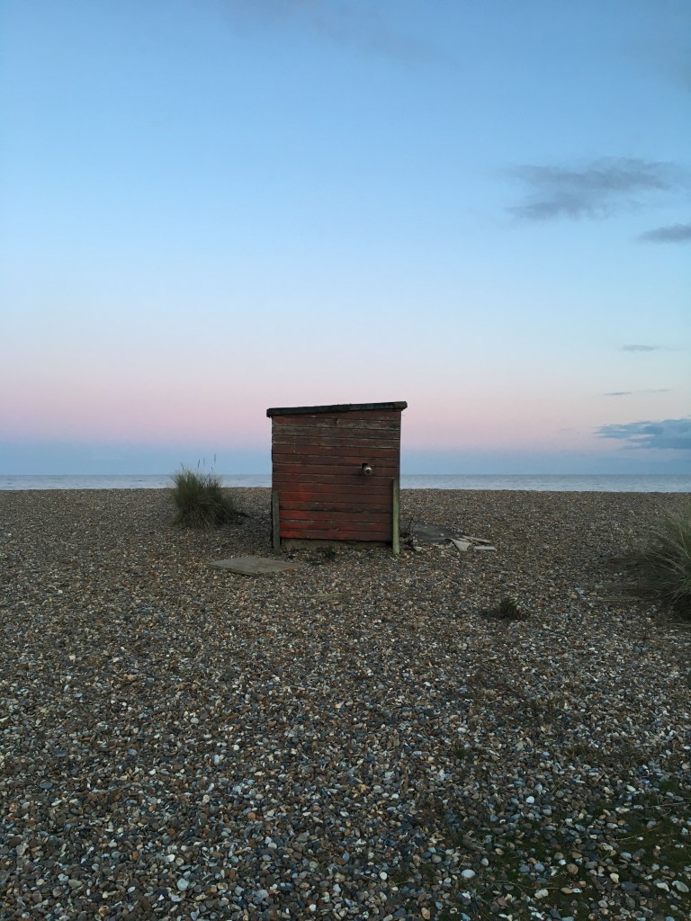On a crisp, bright Friday I arrive at Aldeburgh beach. The sky is a dark metallic blue. There’s barely anyone about. One man fusses over his little dogs. A girl sits in her car looking into her lap.