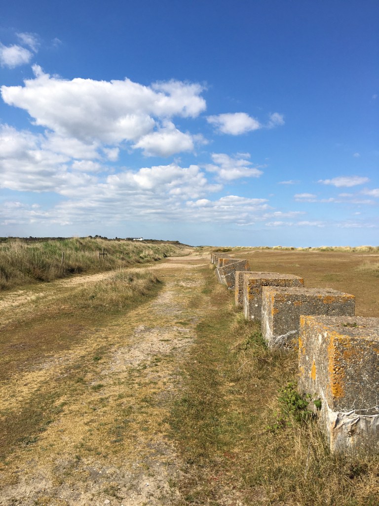 A line of weathered cubes lines the next part of the path, one out of step with the rest so that it’s corner faces down rather than its base. The path – a rough track – continues ever Northward, the North Sea once again an invisible but voluble presence just beyond the dunes.