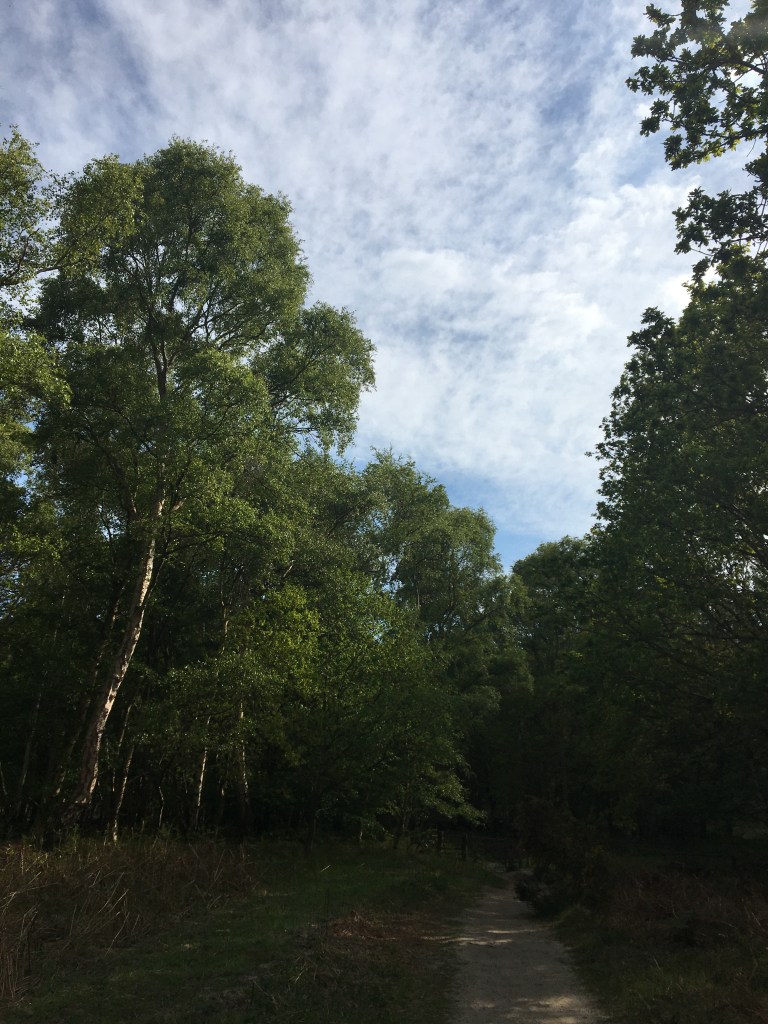 Then, soon after the colours start to soften again and life becomes more apparent. More greens. Trees and bushes intermingle with the harshness of the dust and twigs. Woodland starts to take over on the Heath. Verdant lushness. A welcome relief. The sight of sunlight through leaves.