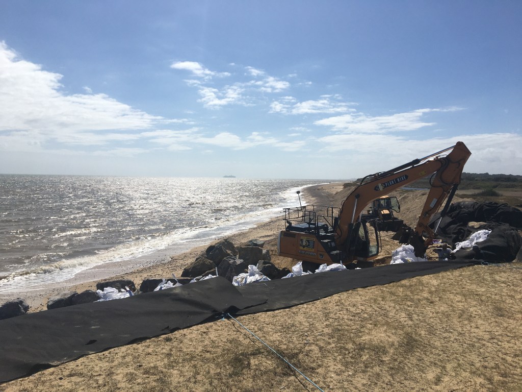 Huge bags of sand are being used to create sea walls. You see them everywhere here. Then they are covered with long lengths of carpet-like material. Unfortunately, this eventually gets ripped up by storms and left in great swathes along the East Anglian Coast.