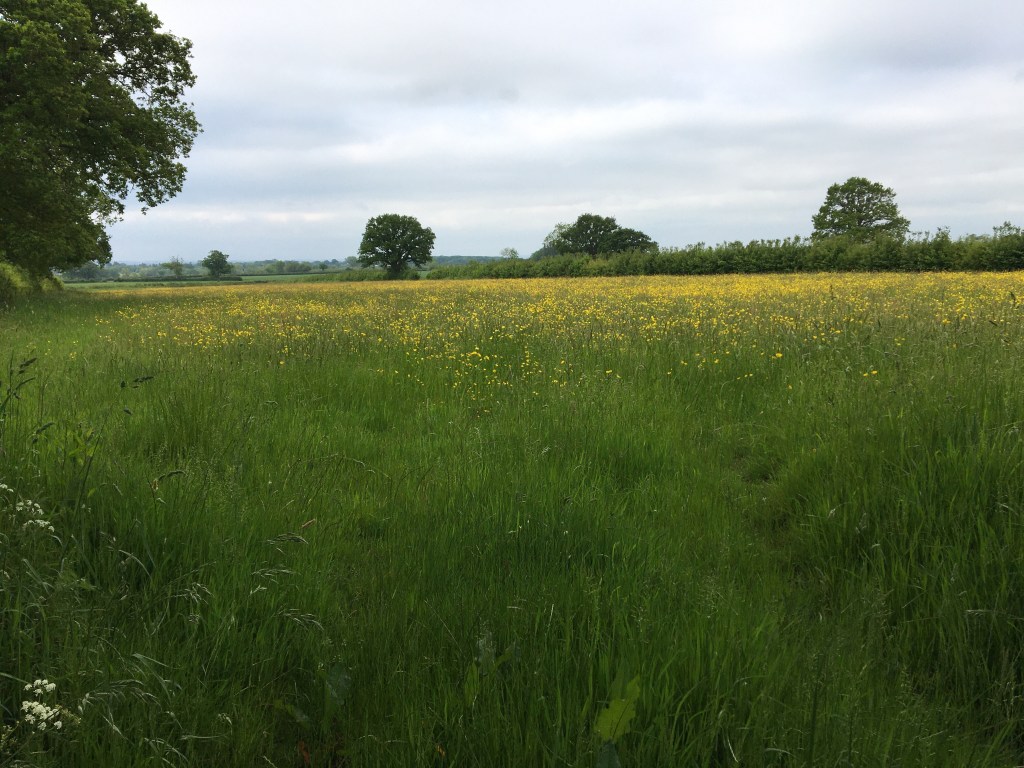 I am in another yellow meadow in North Wootton near Wells. I associate these golden pockets with Somerset at this time of year. Here more than anywhere they seem to be in abundance. The Monarch’s Way skirts two sides of it. Someone has mown these edges to make it easier for people to walk around it. The yellow appears a stronger gold in the evening sun. I stand shielding my eyes against the brightness. There is a sudden blur out of the corner of my right eye.