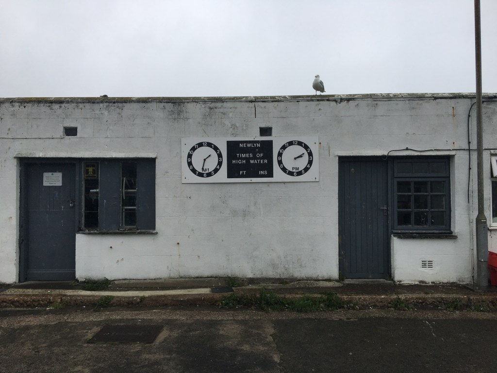According to the Newlyn Harbour website ‘Newlyn is one of the largest fishing ports in the UK. With our strategic geographic location, we are proud to offer round-the-clock refuge to those vessels that fish the Southwest Approaches.’ The harbour master’s office displays the ‘times of high water’ on two clocks while a seagull stands guard.