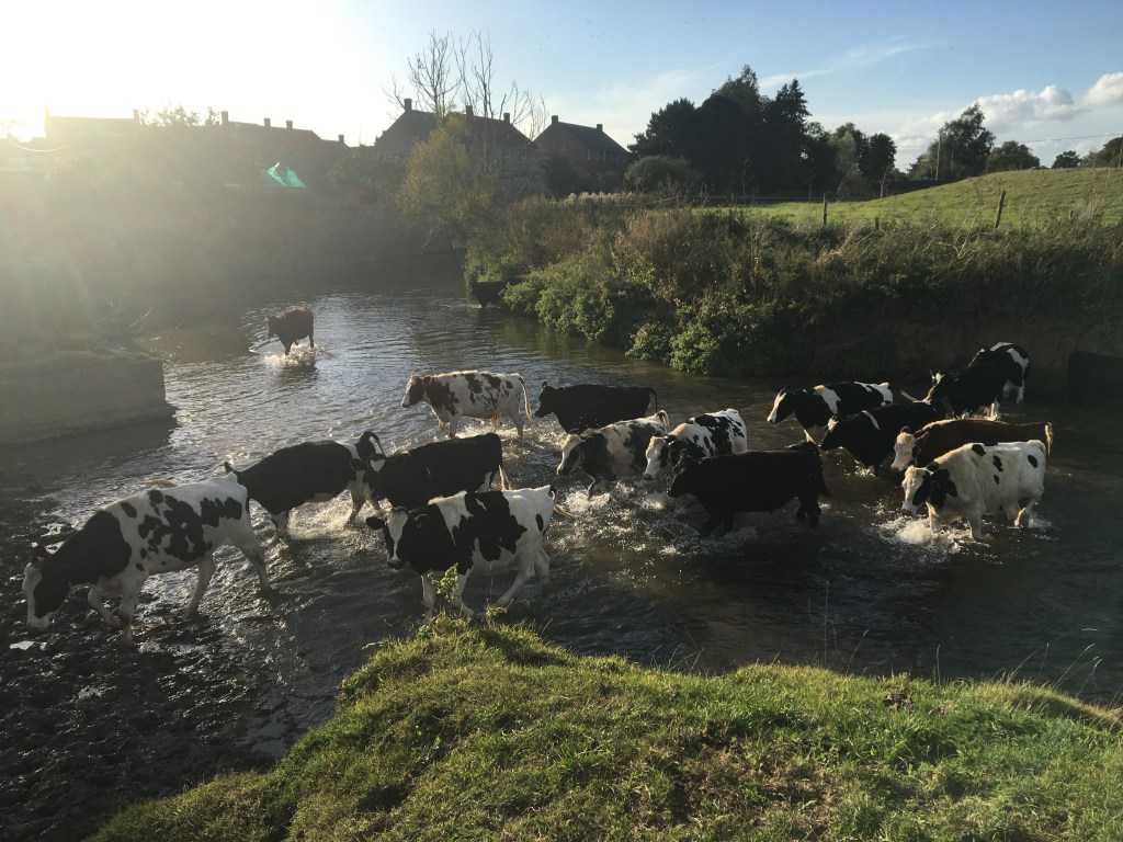 I stop at the end of the field. A gate leads from the field into the town. In a bend of the River Isle a herd of cows stand in the water at Ilchester.