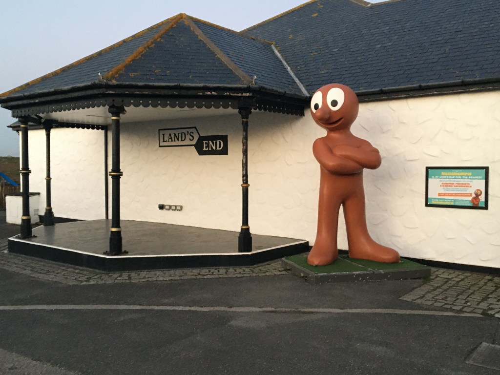 A huge Morph, the first of Nick Park and Aardman Animations’ plasticine heros, stands looking over the scene while over his shoulder is the drama and roar of the open Atlantic. Lots of foreign tourists have their phones at the ready like gunslingers quick to snap anything that suddenly appears. I kind of love this place and its strangeness.