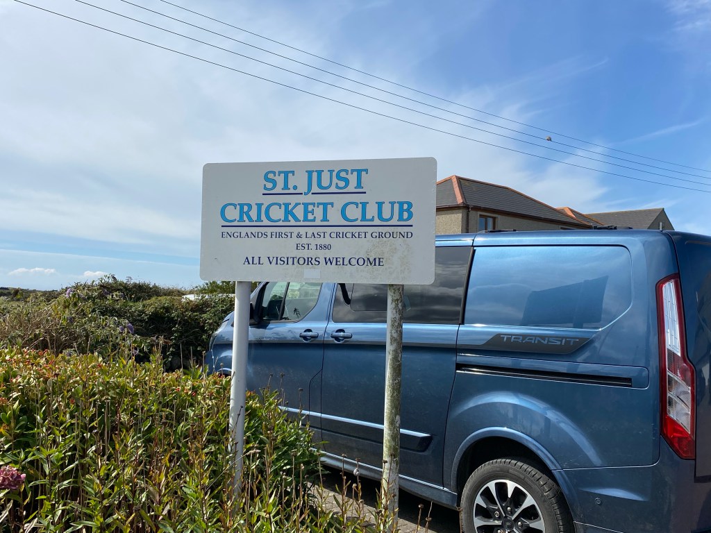 At St Just cricket ground ‘England’s first and last cricket ground’ a small group of men line up on the blue school seats on the boundary rope. In the pavilion two women are making egg mayonnaise sandwiches. A small single wing aircraft has just taken off from Land’s End. There is the occasional clap and shout of encouragement to the batsmen.