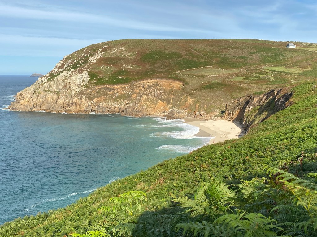 Later I find somewhere to sleep near Pendeen House. I can hear the gentle roar of the sea below the cliffs. There’s a mackerel sky.