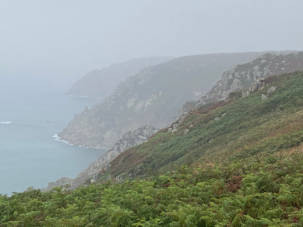 I don’t sleep well above Pendeen Cliff. I keep waking up. I’m aware that other people are sleeping next to me and one person is clinging onto me. I wake up and have that horrible immobility which seems to last ages as I try to move in my twisted sleeping bag. The person huddled up to me is my rucksack. It’s fallen and resting against my back. Oh dear. The strange power of the imagination.