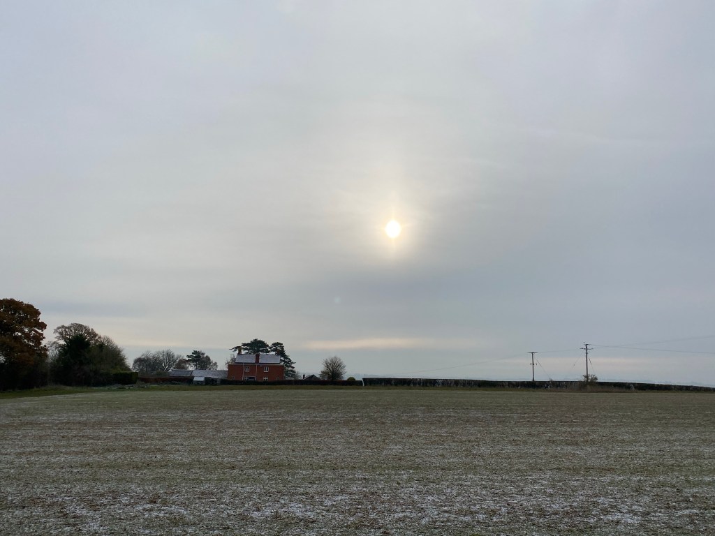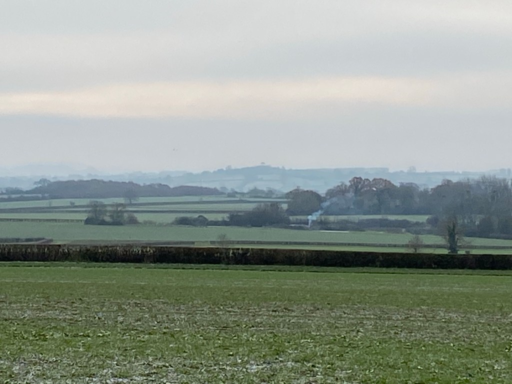 To the south the greens of the fields are muted and Burrow hill is grey and hazy. The darkness of the solitary sycamore that stands atop it only just visible.