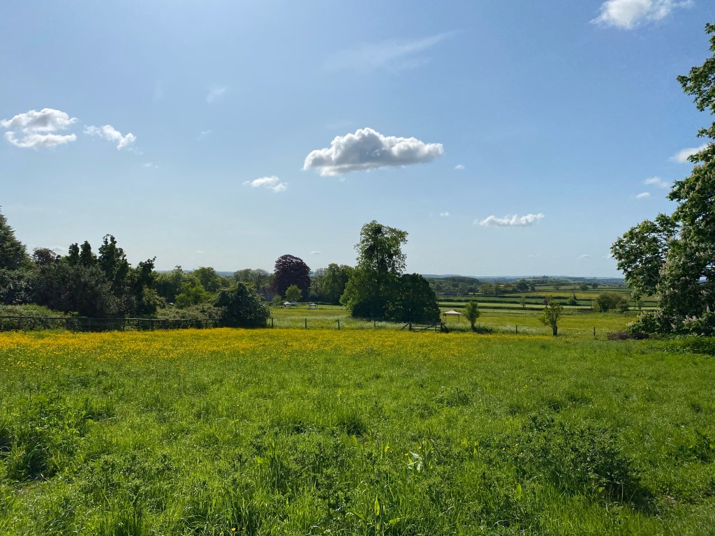 On my way back down Furlong Lane I take a few minutes to look at the wild flower meadow and Curry Rivel cricket pitch beyond. There are several gazebos set up.