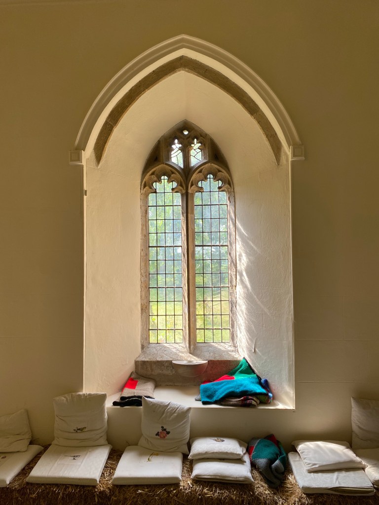 Inside the church there were no pews. Just hay bales lined neatly along the walls. I thought of people in the past who sought refuge in churches. I think of the young man who my dad once found sleeping in the church next to my parents’ house when he went to lock up. He left him to it and went to bed. I think of the now popular pastime of ‘champing’ (church camping) where people pay to sleep in churches.