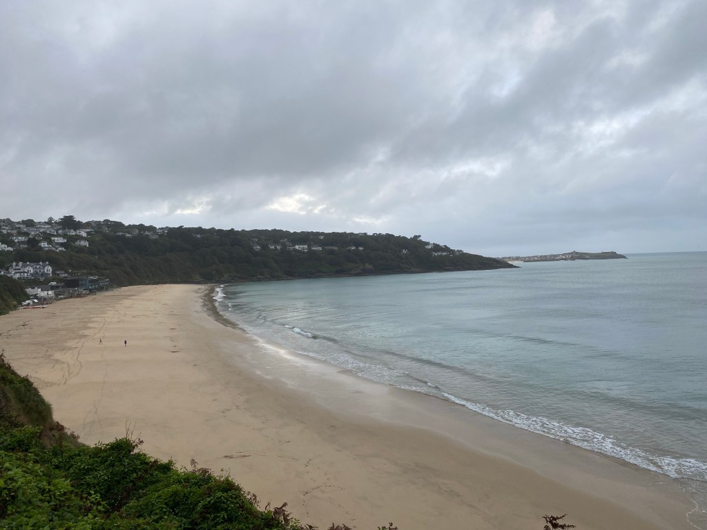 The beach at Carbis Bay is a gentle crescent of neat white sand bordering the glassy water of the sea. It’s nice to have a bit of company so early in the morning and it prompts me to join them in the gently lapping water. It’s cold and I’m immediately awake, listening to my breath amplified and thinking of little else.
