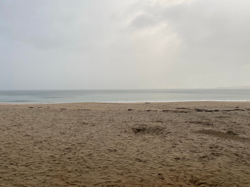 The morning is overcast and still but the warmth of late summer has lingered like the glow after a lover’s touch on my skin. This coastline is distinctive for the huge swathes of sand that border it. At St Ives, Carbis Bay and then Porth Kidney Sands which is devoid of people and doesn’t appear to be real, like a print on a wall. This is only the start: from the mouth of the River Hayle sand dunes continue for several miles north east until they end at Godrevy Point.