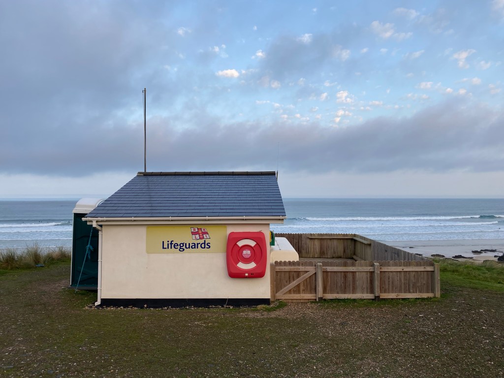 Beyond this the dips and tufts of grass were becoming difficult to get across and the night was much darker than two weeks ago at Carbis Bay. At one stage I was suddenly close to the cliff edge and was brought up short. My breath was coming harder now and my legs were starting to shake. At a point where I felt my fears starting to grow stronger and start to take over, the path widened and the land grew flat. A sign appeared welcoming me to Gwithian Beach and like a godsend I saw the angular outline of the Lifeguards hut.