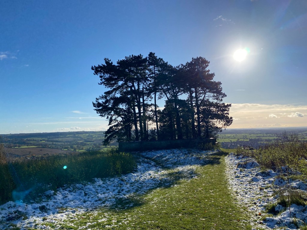 A walled clump of pine trees stands sentinel above Wotton-under-Edge. They make an undulating rushing sound like the wind itself their needles quivering in the cold air. All around their base on the east side away from the sun snow has gathered itself into drifts. The first Arctic weather has arrived for the winter and now we remember what the cold is really like.