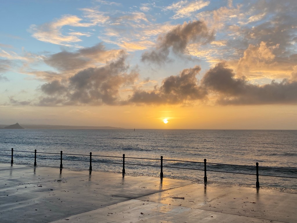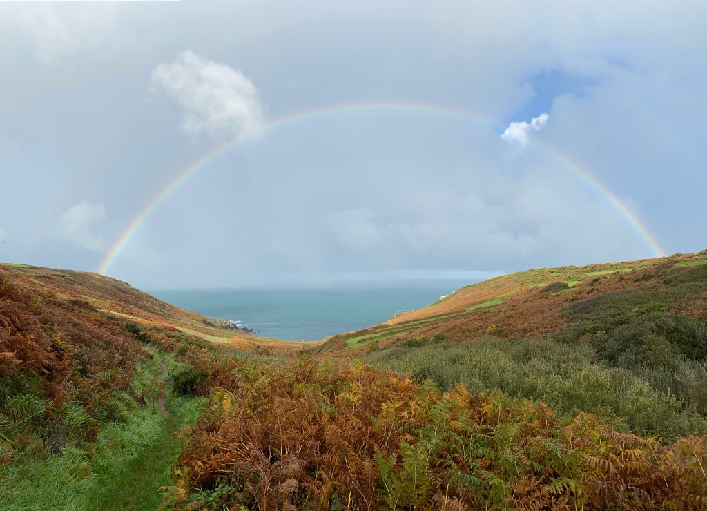 I can see Gurnard’s Head which I went round in October half term after the voyage on Mascotte. Beyond that I can see Pendeen Watch with its white lighthouse and beyond that the foam forming around the rocks known as Three Stone Oar. It was the end of the summer, the time of mourning after the Queen’s death. How slow I am and how time flies. Before I know it a whole year will have gone and I’ll only be at the next headland! Time to move on..