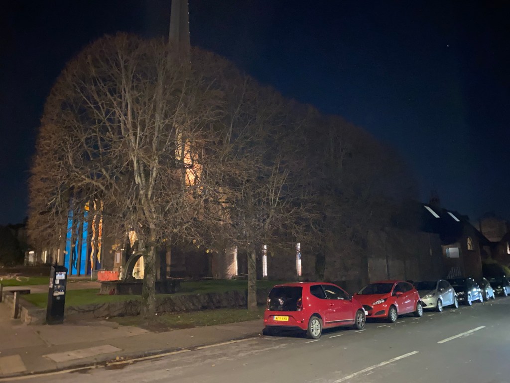 In the side of the nave of the church was an altar where the sun shone its light through stained glass saints forming patches of pale colour on the wall. On the altar were flowers and prayers from primary school children on little bits of paper. They prayed for what they felt was important to them. One prayed that he would get the back seat on the bus for a whole week.